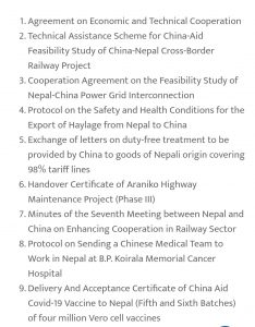 नेपाल र चीनबीच ९ वटा समझदारीपत्रमा हस्ताक्षर भएको छ