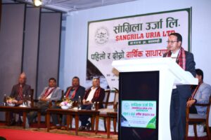एक भव्य समारोहबीच, सांग्रिला उर्जा लिमिटेडका कार्यकारी अध्यक्ष किशोर सुवेदीले बार्षिक साधारणसभा समुद्घाटन गर्नुभयो ।